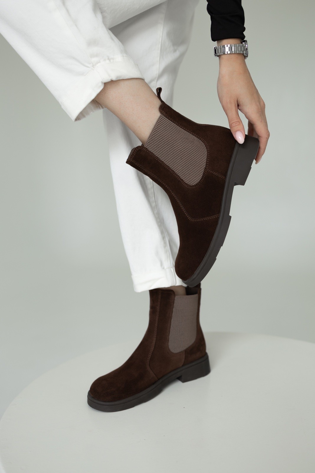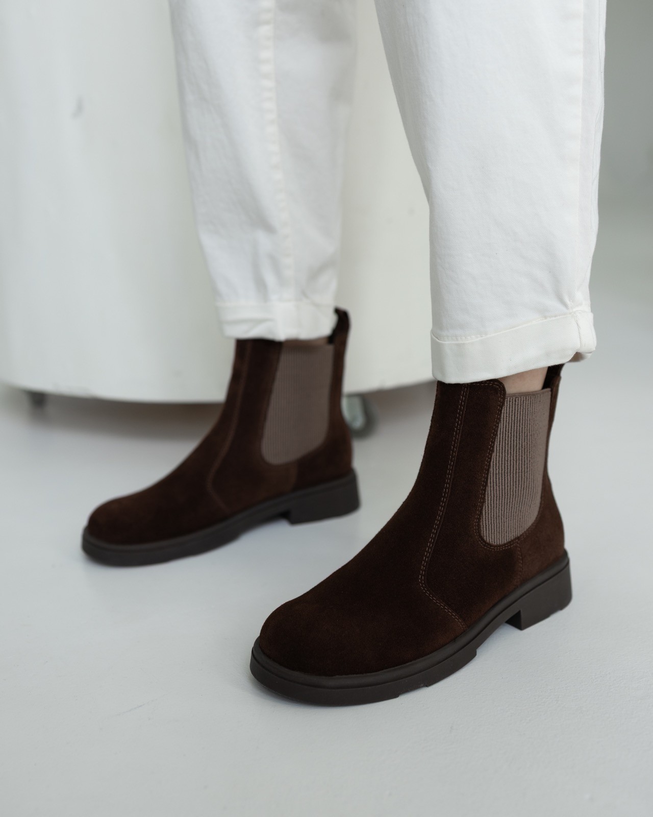 Замшеві ЧЕЛСІ в шоколадному кольорі стануть Вашою універсальною парою, їх можна носити як з класичними костюмами так і з повсякденним одягом. Прекрасний вибір для осені та весни. В черевиках Челсі, ви збережете тепло і будете виглядати стильно і модно. Комфортна анатомічна форма носка додасть зручності в повсякденному носінні. Ваші ніжки будуть вдячні!