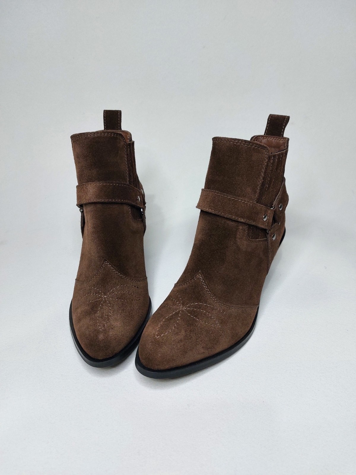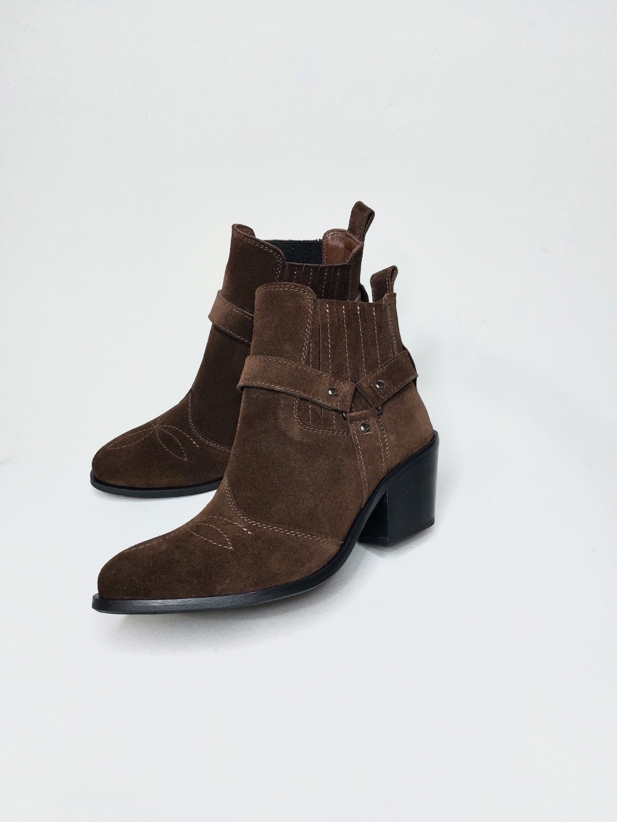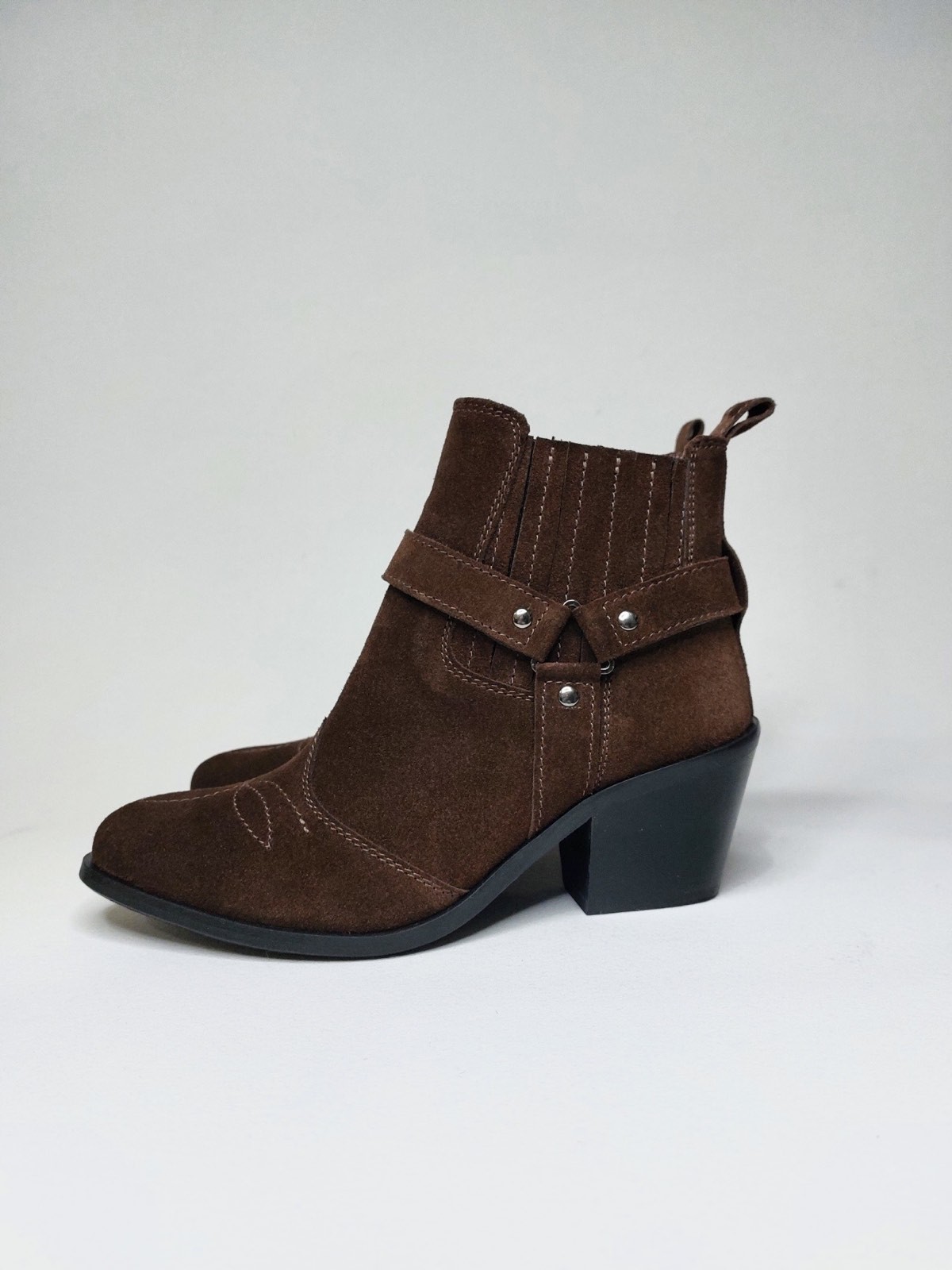 МАТЕРІАЛ: натуральна замша. Можемо виготовити в іншому кольорі або в гладкій шкірі, питайте у менеджера. Стійки підбори висотою 5 см. Висота черевика без підошви 13 см.